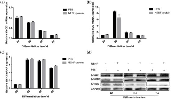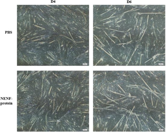 3.3. Exogenous Addition of NENF Had no Significant Effect on the Differentiation of Myoblasts in Co-Culture System.