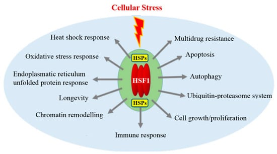 - Barna, J.; Csermely, P.; Vellai, T. Roles of heat shock factor 1 beyond the heat shock response. Cell. Mol. Life Sci. 2018, 75, 2897–2916. [Google Scholar] [CrossRef] [PubMed]