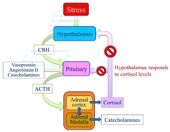- Tsigos, C.; Kyrou, I.; Kassi, E.; Chrousos, G.P. Stress: Endocrine Physiology and Pathophysiology. In Endotext; Feingold, K.R., Anawalt, B., Boyce, A., Chrousos, G., de Herder, W.W., Dungan, K., Eds.; MDText.com Inc.: South Dartmouth, MA, USA, 2000. [Google Scholar]