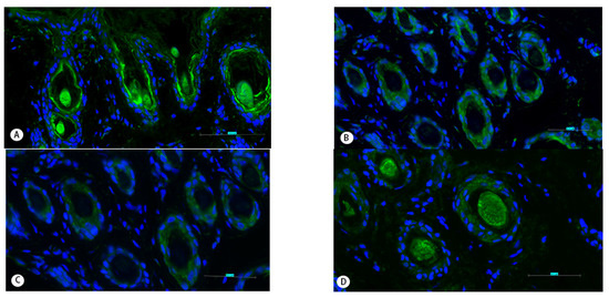 - Adly, M.A.; Assaf, H.A.; Hussein, M.R. Expression of the heat shock protein-27 in the adult human scalp skin and hair follicle: Hair cycle-dependent changes. J. Am. Acad. Dermatol. 2006, 54, 811–817. [Google Scholar] [CrossRef]