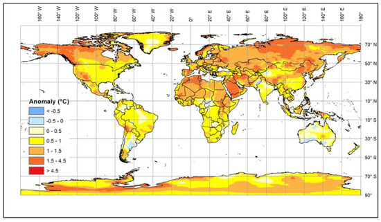 Climate change is generally causing an increase in global temperatures (see Box 1). The most recent estimates [1] suggest that a 1.5 °C warming compared to the 1850–1900 baseline will be reached in the second half of the current decade, but, in addition, there are longer cold periods and increased levels of solar radiation [2,3,4,5,6] (Figure 1).