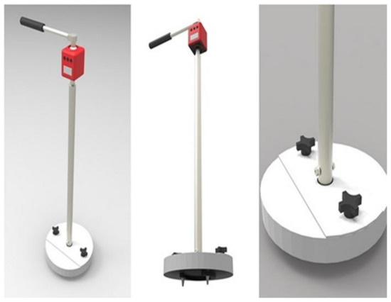 The surface hardness and resistance to compaction was measured using a custom impact test device (ITD) based on ASTM D5874-16 (Figure 5). The Clegg hammer is similar to the ITD, however it measures the maximum or the average deceleration of the mass over three to five drops [3]. The ITD, in contrast to the Clegg hammer, measures the deformation of the surface while still using a 2.25 kg mass dropped repeatedly inside a tube at each location from a height of 0.45 m (ITI: Impact Test Index). The principle is based on an impact velocity of a falling object with a known energy. The compaction of the surface and orientation of the tube results in variation in the distance traveled by the mass for the Clegg hammer, but the variation in distance is considered in the ITD. Unlike the various static and dynamic designs of penetrometers, the displacement on the ITD is measured for a larger impactor than the small square or conical impactors normally used in a penetrometer [31]. For the ITD, the distance to the impactor is measured with respect to a reference point at the top of the tube using a low-cost commercial laser distance measurement device (Model GLM 150 c, Bosch, Singapore). The cost of the system is a fraction of that of the commercial Clegg hammers and if produced locally would be within the means of nearly all arena builders and owners.