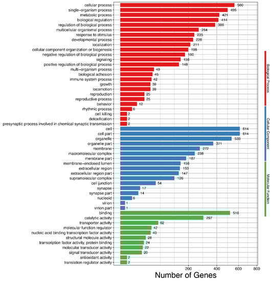 - Grabherr, M.G.; Haas, B.J.; Yassour, M.; Levin, J.Z.; Thompson, D.A.; Amit, I.; Adiconis, X.; Fan, L.; Raychowdhury, R.; Zeng, Q.D.; et al. Full-length transcriptome assembly from RNA-Seq data without a reference genome. Nat. Biotechnol. 2011, 29, 644–652. [Google Scholar] [CrossRef] [Green Version]