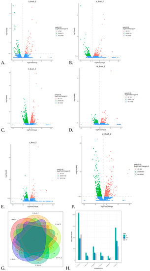 - Love, M.I.; Huber, W.; Anders, S. Moderated estimation of fold change and dispersion for RNA-seq data with DESeq2. Genome Biol. 2014, 15, 550. [Google Scholar] [CrossRef]