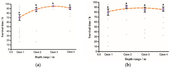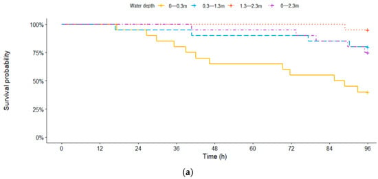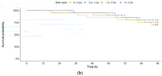 | Water Depth (m) | Species | Average Survival Time (h) |