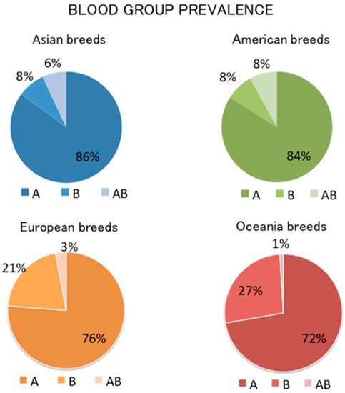 - Giger, U.; Bucheler, J.; Patterson, D.F. Frequency and inheritance of A and B blood types in feline breeds of the United States. J. Hered. 1991, 82, 15–20. [Google Scholar] [CrossRef] [PubMed]