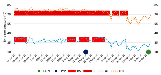 - Hoffmann, G.; Herbut, P.; Pinto, S.; Heinicke, J.; Kuhla, B.; Amon, T. Animal-related, non-invasive indicators for determining heat stress in dairy cows. Biosyst. Eng. 2020, 199, 83–96. [Google Scholar] [CrossRef]