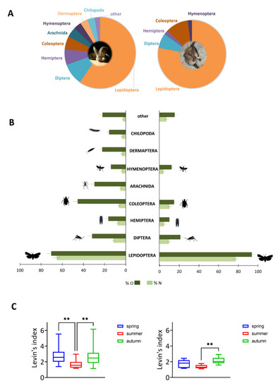 - Swift, S.M.; Racey, P.A.; Avery, M.I. Feeding ecology of Pipistrellus pipistrellus (Chiroptera: Vespertilionidae) during pregnancy and lactation. II. Diet. J. Anim. Ecol. 1985, 54, 217–225. [Google Scholar] [CrossRef]