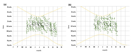 3.4. Seasonal and Nocturnal Activity Patterns