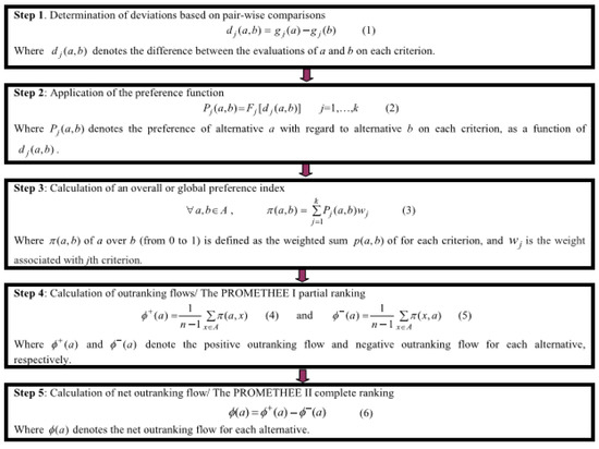 - Brans, J.P.; Vincke, P. Note—A Preference Ranking Organisation Method: (The PROMETHEE Method for Multiple Criteria Decision-Making). Manag. Sci. 1985, 31, 647–656. [Google Scholar] [CrossRef] [Green Version]