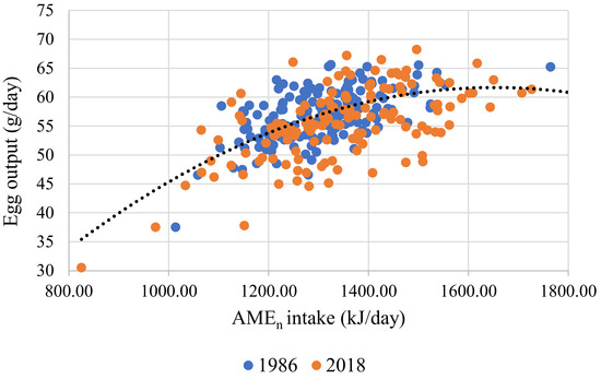 | 3 | Egg output, g/d (r2 = 0.052) | Intercept | 71.138 | 3.997 | <0.001 |