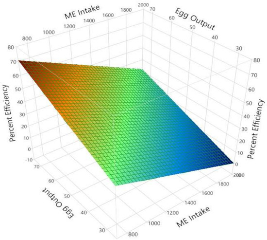 | 2 | Egg output, g/d (r2 = 0.374) | Intercept | −34.507 | 14.090 | 0.015 |