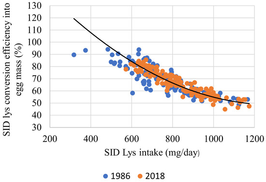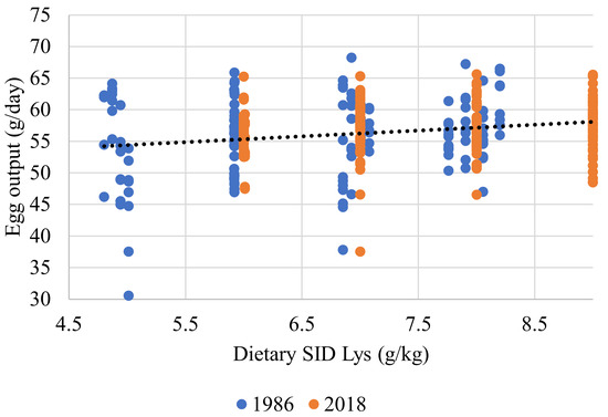 - Silva, E.P.; Malheiros, E.B.; Sakomura, N.K.; Venturini, K.S.; Hauschild, L.; Dorigam, J.C.P.; Fernandes, J.B.K. Lysine requirements of laying hens. Livestock Sci. 2015, 173, 69–77. [Google Scholar] [CrossRef]