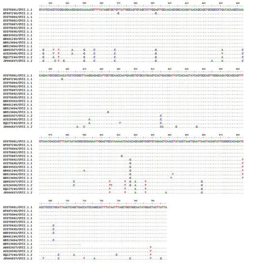 3.2.3. Sequencing and Phylogenetic Analysis