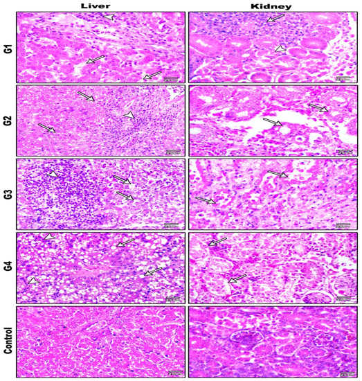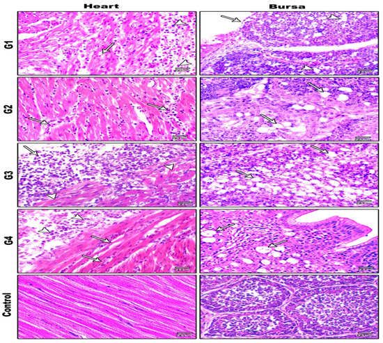 - El-Mandrawy, S.A.M.; Ismail, S.A.A. Selective Hematological, Biochemical and Pathological Alterations of Newcastle Virus in Naturally Infected and Vaccinated Broilers in Damietta Governorate of Egypt. Bull. Univ. Agric. Sci. Vet. Med. Cluj-Napoca. Vet. Med. 2017, 74, 1–10. [Google Scholar] [CrossRef][Green Version]