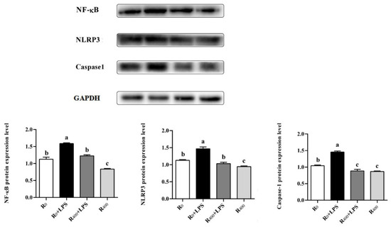 | NLRP3 | 1.06 ± 0.13 b | 1.70 ± 0.23 a | 1.10 ± 0.40 b | 0.85 ± 0.08 b |