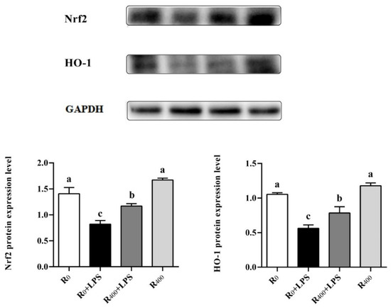 3.5. Effect of Dietary RES on Regulation of Nrf2/HO-1 Signaling Pathway and Anti-Oxidase Activity in Duck