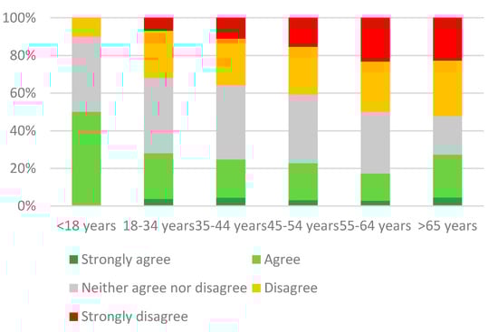 Degree of agreement for each age bracket with the statement: “the use of preservatives in pet food is necessary for optimal preservation”.