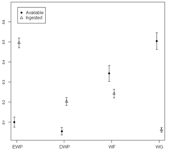 - Johnson, D.H. The comparison of usage and availability measurements for evaluating resource preference. Ecology 1980, 61, 65–71. [Google Scholar] [CrossRef]