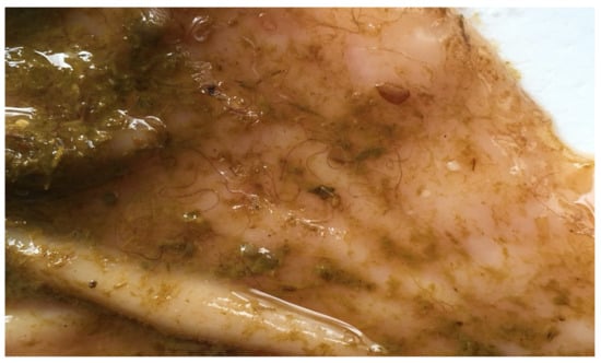 The diagnosis of haemonchosis in the hyperacute form is based on two findings: The detection of large numbers of adult Haemonchus spp. in the abomasum (Figure 1) and the macroscopic observation of petechiae on the gastric mucosa of the organ [125].