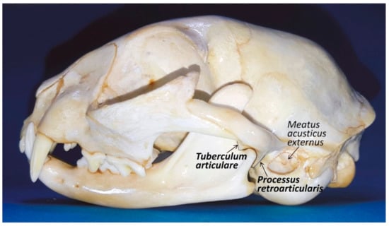 - Knospe, C.; Roos, H. Zur Articulatio temporomandibularis der Hauskatze (Felis silvestris catus). Anat. Histol. Embryol. 1994, 23, 148–153. [Google Scholar] [CrossRef]
