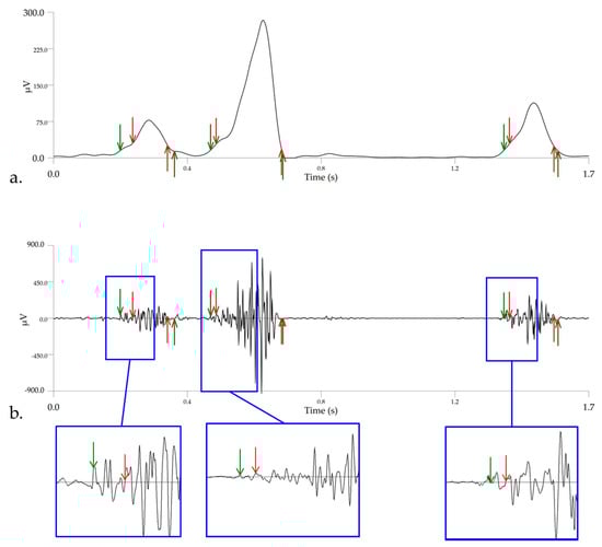 - Hodges, P.W.; Bui, B.H. A comparison of computer-based methods for the determination of onset of muscle contraction using electromyography. Electroencephalogr. Clin. Neurophysiol. 1996, 101, 511–519. [Google Scholar] [CrossRef] [PubMed]