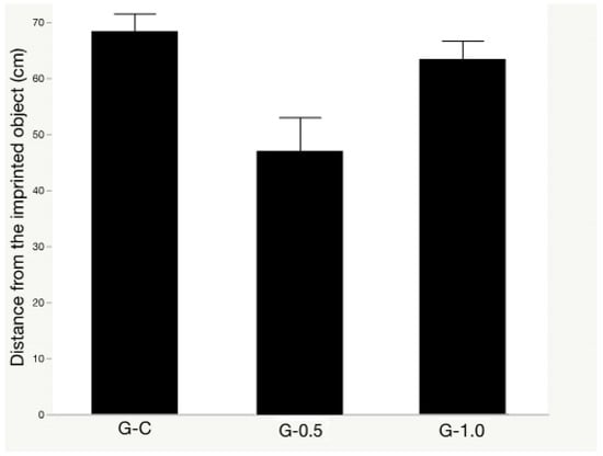 The following tests assessing the broiler chickens’ memory ability and fear response were conducted by observers in this study. To minimize the potential effects of circadian variations on the behavior as well as the concentration of neurohormones, the following tests were performed by repeating the cycle of G-C, G-0.5, and G-1.0 until the end of each test, and, to avoid using the same birds repeatedly for the following tests, the birds were marked with different color leg bands after each test.