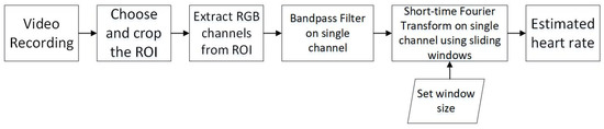 Figure 2. Flow chart representation of the different processing steps for heart rate extraction based on video data.