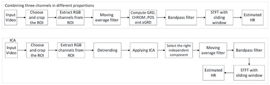15. Alghoul, K.; Alharthi, S.; Al Osman, H.; El Saddik, A. Heart rate variability extraction from videos signals: ICA vs. EVM comparison. IEEE Access 2017, 5, 4711–4719. [Google Scholar] [CrossRef]