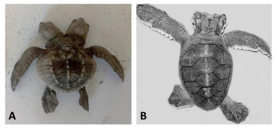 Sea turtle embryos and hatchlings present different carapacial anomalies, such as a compressed carapace, misshapen, supernumerary or subnumerary scutes [13], and according to Velo-Antón et al. [43], the presence of anomalies, malformations, and asymmetries in wild animals could be an indicator of developmental instability. Variation in scute patterns is the most common malformation in the carapace of hard-shelled sea turtles, but there is no evidence that these variations affect survival [11,13,20,116]. The main proven causes of these anomalies are hot temperatures and dry conditions [29,30], although it has also been suggested that the presence of metals could be involved [117]. In addition, crowding pressure on the eggs inside the nest may contribute to carapacial deformities [13].