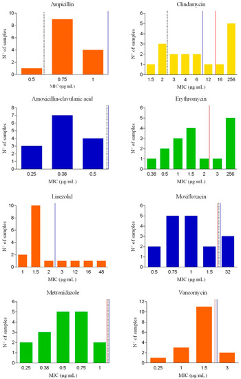 - Freeman, J.; Vernon, J.; Morris, K.; Nicholson, S.; Todhunter, S.; Longshaw, C.; Wilcox, M.H.; Pfeiffer, S.; Delmee, M.; Muytjens, L.; et al. Pan-European longitudinal surveillance of antibiotic resistance among prevalent Clostridium difficile ribotypes. Clin. Microbiol. Infect. 2015, 21, 248.e9–248.e16. [Google Scholar] [CrossRef]