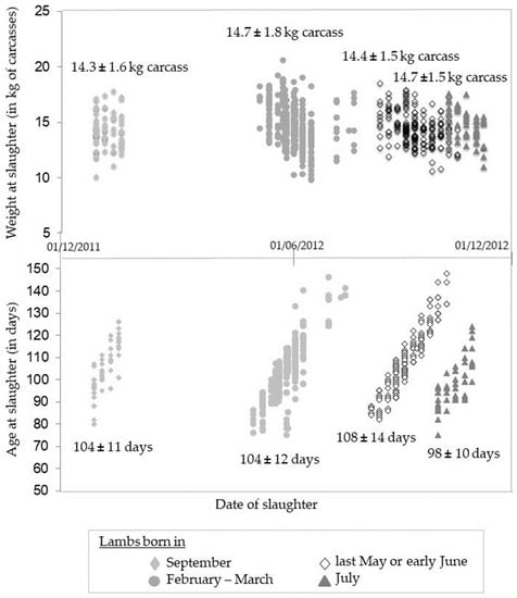 - Prache, S.; Benoit, M.; Boutonnet, J.P.; François, D.; Sagot, L. La production d’ovins viande en France 2ème partie. Commerce, abattage, transformation et consommation. Viandes Prod. Carnés 2013, 29, 1–10. [Google Scholar]