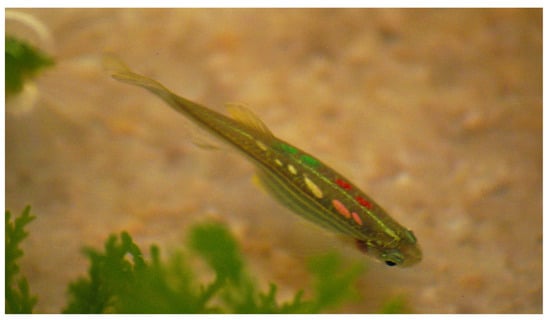 - Hohn, C.; Petrie-Hanson, L. Evaluation of visible implant elastomer tags in zebrafish (Danio rerio). Biol. Open 2013, 2, 1397–1401. [Google Scholar] [CrossRef]