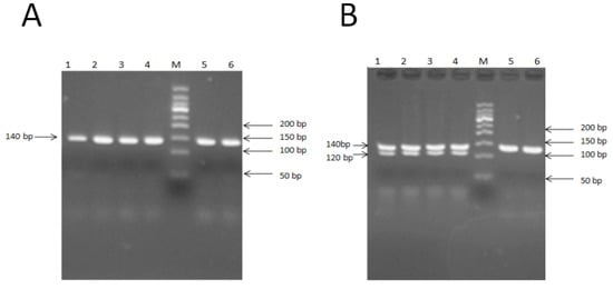PCR amplification of genomic DNA with FecXI primers resulted in a target band with a size of 150 bp, and primer dimer bands also formed. However, this did not affect the enzymatic digestion. After Xba1 digestion, detection was performed by 8% non-denaturing PAGE electrophoresis, which identified multiple bands; however, their size was not the target band. The PCR product could not be cleaved by the enzyme. The type still retained its size of 150 bp, indicating a lack of polymorphism at this site in Cele black sheep (see Supplementary Figure S2A,B).