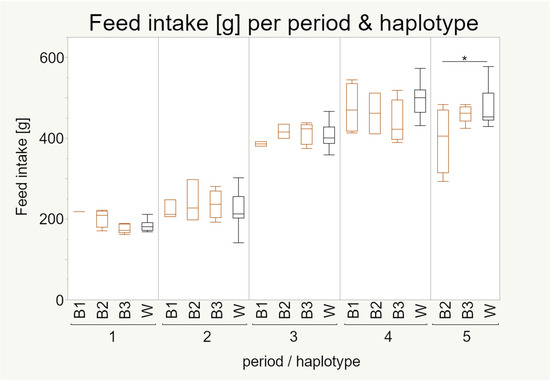 The overall impact of the haplotypes on body weight and feed intake was evaluated by a statistical model, derived from a linear mixed model developed by Sommerfeld et al. 2020a [27].