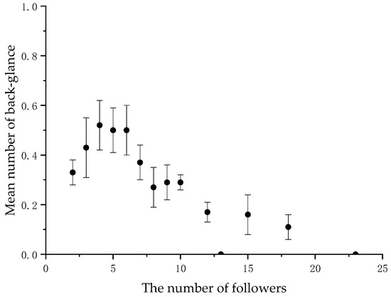 Mean frequency of the initiator’s back-glance per collective movement according to the number of followers.