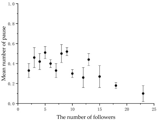 Mean frequency of the initiator’s pause per collective movement according to the number of followers.