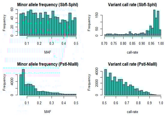 - Linck, E.; Battey, C.J. Minor Allele Frequency Thresholds Strongly Affect Population Structure Inference with Genomic Data Sets. Mol. Ecol. Resour. 2019, 19, 639–647. [Google Scholar] [CrossRef] [PubMed]