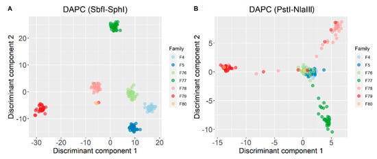 - Jombart, T.; Devillard, S.; Balloux, F. Discriminant Analysis of Principal Components: A New Method for the Analysis of Genetically Structured Populations. BMC Genet. 2010, 11, 94. [Google Scholar] [CrossRef] [PubMed]