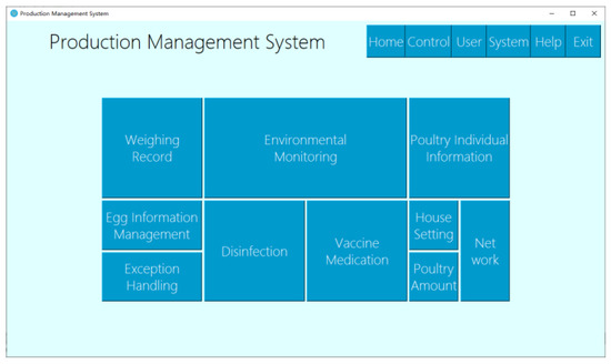In recent years, more and more researchers have devoted themselves to the study of precision poultry farming [11,12]. Some researchers help farmers control and monitor the health status of poultry through IOT, imagery analytics, and other technologies [13]. Other researchers build online platforms and using smart sensors to record and manage production information in real time [14,15,16]. Although wireless sensing and cloud platform techniques are well advanced, there is no complete system that covers all of the functions to meet needs for poultry farming management. The technical difficulties include the unified construction of the system, the reasonable division of functional modules, the good mutual cooperation between modules, the interaction of software and hardware, and the intelligentization of the system.