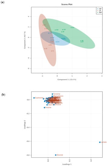 PLS-DA score plots and loading plots of serum. (a) PLS-DA score plots; (b) PLS-DA loading plots.