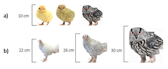 The pictures used as stimuli are shown in Figure 2. The most ambiguous stimuli were 50–50% morphs between the chicken and the owl pictures, created in the computer program Morpheus Photo Morpher v.3.17 Standard (Morpheus Development, Howell, MI, USA). The images were adjusted so that the chicken pictures were the same sizes as the tested chickens. All images were printed in colour with a white background and attached to a white wall at the end of the alley.