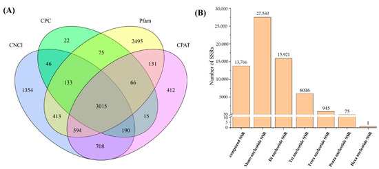 2.6. Identification of lncRNAs and Simple Sequence Repeats (SSRs)