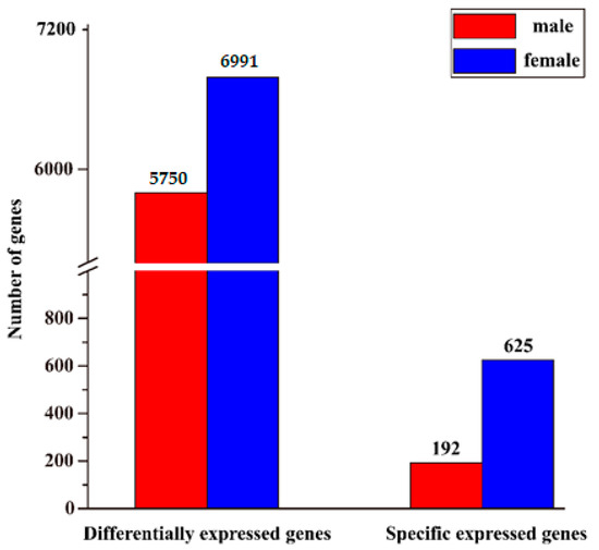 3.4. Identification of Sex-Biased Genes and Enrichment Analysis