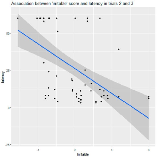 More irritable dogs were also faster to solve the detour in this group (95% CI = (1.161–1.399), Z = 5.11, p < 0.0001). This effect of the factor “irritable” was only significant after the demonstration (in trials 2 and 3) (Figure 3).