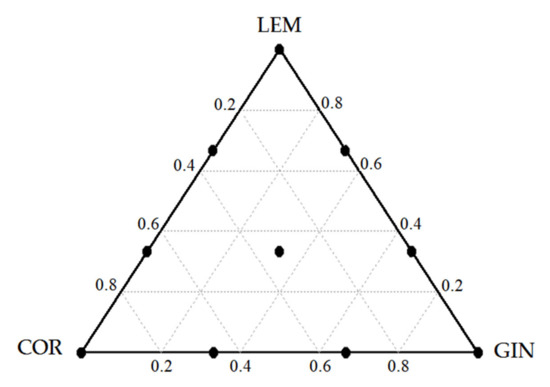 | T10 | LEM + COR + GIN | 0.33 | 0.33 | 0.33 | 25.0 | 25.0 | 25.0 | 50.0 | 50.0 | 50.0 |
