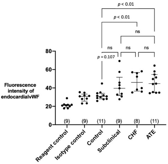 - Kumagai, K.; Fukuchi, M.; Ohta, J.; Baba, S.; Oda, K.; Akimoto, H.; Kagaya, Y.; Watanabe, J.; Tabayashi, K.; Shirato, K. Expression of the von Willebrand Factor in Atrial Endocardium is Increased in Atrial Fibrillation Depending on the Extent of Structural Remodeling. Circ. J. 2004, 68, 321–327. [Google Scholar] [CrossRef][Green Version]