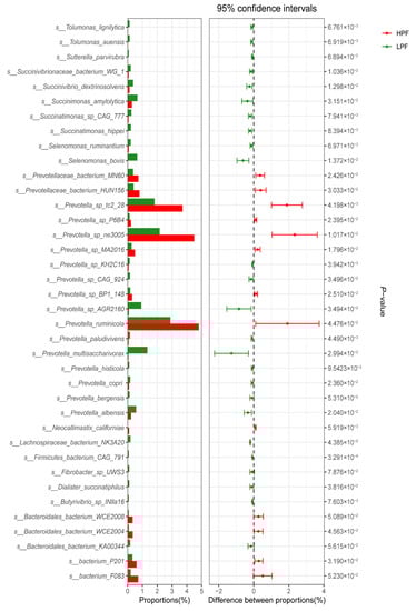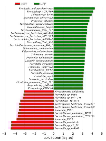 3.4. Differential Abundance of the Rumen Microbiome between the HPF and LPF Groups with PP and FP