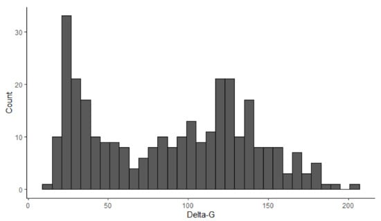 p < 0.001). The Hosmer and Lemeshow’s pseudo-R2 was high at 87%, indicating that the fit of the model improved greatly with inclusion of the delta-G variable. All model assumptions were met.