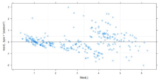 For the linear mixed regression model, the assumption of the equal variance of residuals was violated. The impact of this violation is on the estimated standard error for the beta coefficients of explanatory variables, where the standard error is possibly underestimated. However, it is not believed that there is a significant impact on the estimation of the coefficient. Therefore, while it is acknowledged that there is a violation of the model assumption, the model was used for the remainder of this study.